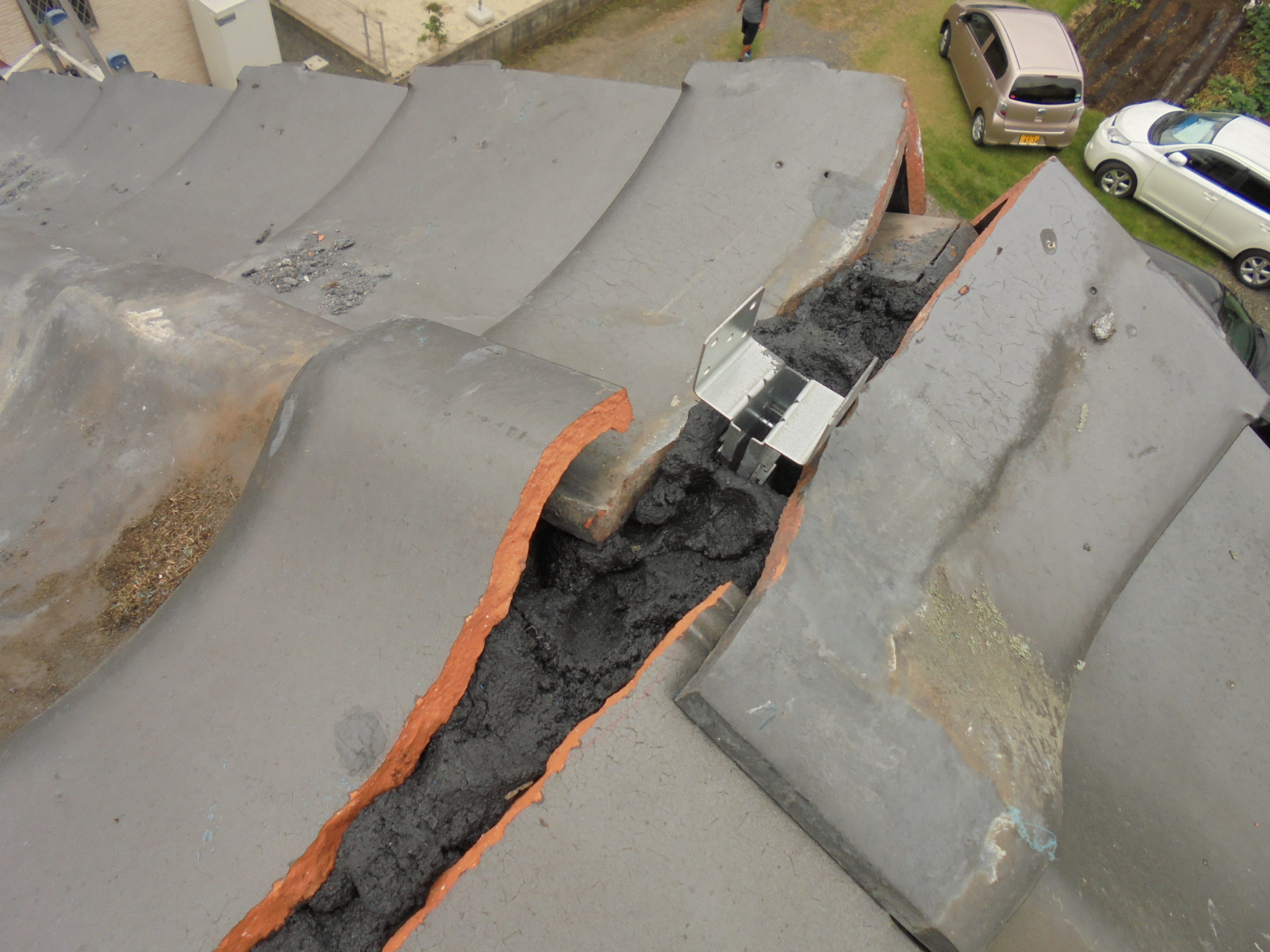 現在、熊本地震の被害で瓦屋根を補修工事している現場をご紹介します。