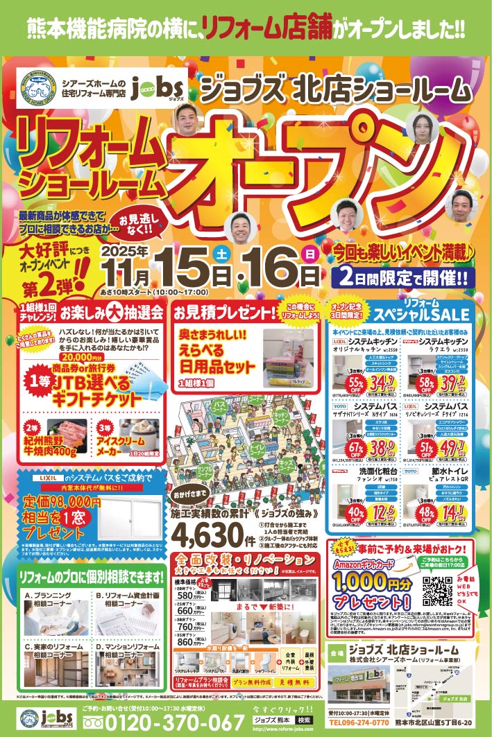 リフォーム祭にインターネットまたはお電話(0120-370-067)にて、事前予約していただくとAmazonギフトカード1000円分プレゼントいたします!