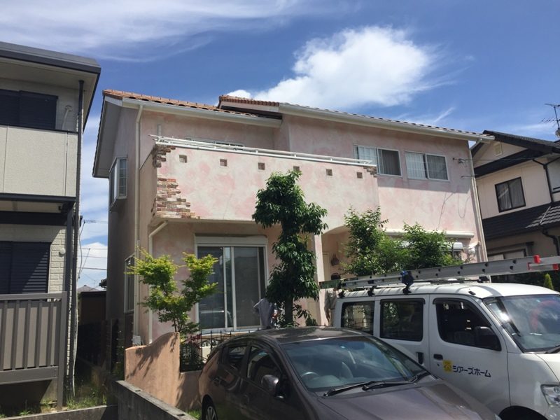 熊本市東区S様邸 外壁・付帯部塗装リフォーム工事 2017.02.03 (Fri) AFTER BEFORE 熊本市東区 施工データ 築年数 - 施工日数 30日間 建物 木造2階建て 工事の詳細 ・塗料 アステックペイント <色>外壁 101.2万円(税込) :アイシーピンク付帯部 64.9万円(税込):ホワイトリリィ(雨樋・破風)、トゥルーホワイト(軒天) 担当者:緒良中 AFTER 熊本地震により、外壁のひび等が見られましたが、綺麗になりました。洋風感のある素敵な外観となりました。 BEFORE